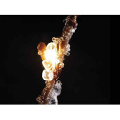 Cu 125 de ramuri cu fructe, cristale din sticla si 480 leduri cu lumina calda.