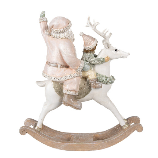 Iarna a venit, sarbatorile sunt aproape, iar Mos Craciun isi anunta si el venirea, insotit de un copilas vesel, calare pe un ren parca desprins din povestile copilariei. Iti va aduce si cadouri, cu siguranta, dar iti va insufla din plin mai ales acel spirit autentic de sarbatoare, gratie detaliilor atent lucrate, dar si cromaticii in nuante festive de roz si alb. Promite sa iti aduca pacea si linistea in suflet, bucuria si iubirea nemarginita fata de cei dragi, prin simpla sa prezenta sub brad, deasupra semineului sau chiar in centrul mesei festive!