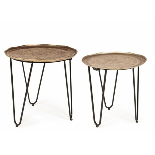 Setul Amira, alcatuit din doua masute de design in stil glamour, se va face usor remarcat prin eleganta sa deosebita. Pretabil pentru amenajarea unor decoruri moderne si sofisticate, acest set reuseste prin aspectul sau sa aduca un plus de stil si rafinament oricarui loc. Blatul din aluminiu cu finisaj antichizat, in contrast cu picioarele din otel negru creeaza un efect vizual luxos, care cu siguranta va atrage toate privirile. Pot servi cu succes ca masute de cafea, dar la fel de bine pot gazdui diverse decoratiuni, glastre cu flori inmiresmate sau rame foto.