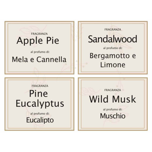 Parfumuri: Placinta cu mere, Lemn de santal, Mosc salbatic, Eucalipt si pin