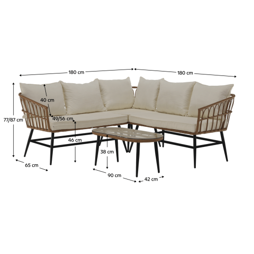 Dimensiuni sezut: Adancime 49 / 56 cm (fara perne) x Inaltime fata de sol 46 cm